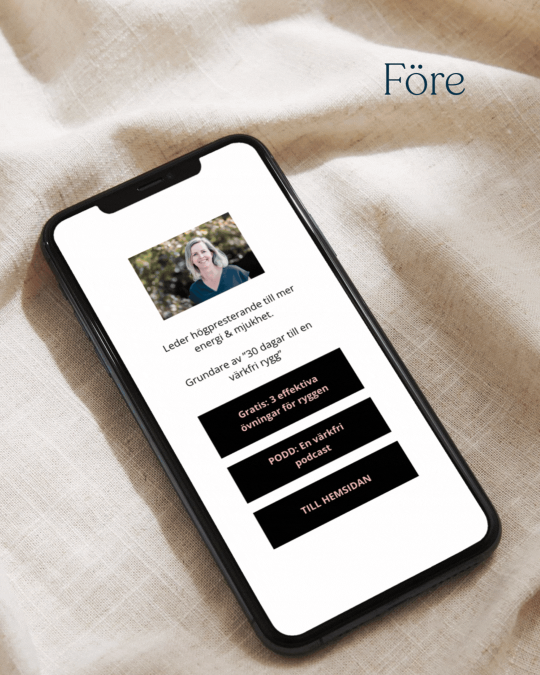 🔥 Jag lyfter första kontaktytorna i din business (IG, bio, startsida / säljsida) så det känns som det du faktiskt levererar: krispigt, tydligt och jääävligt snyggt.